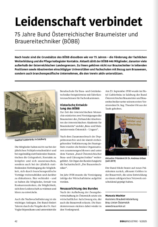 In der neuen Ausgabe der Brauindustrie wird ein Artikel zu unserem Jubiläum veröffentlicht.